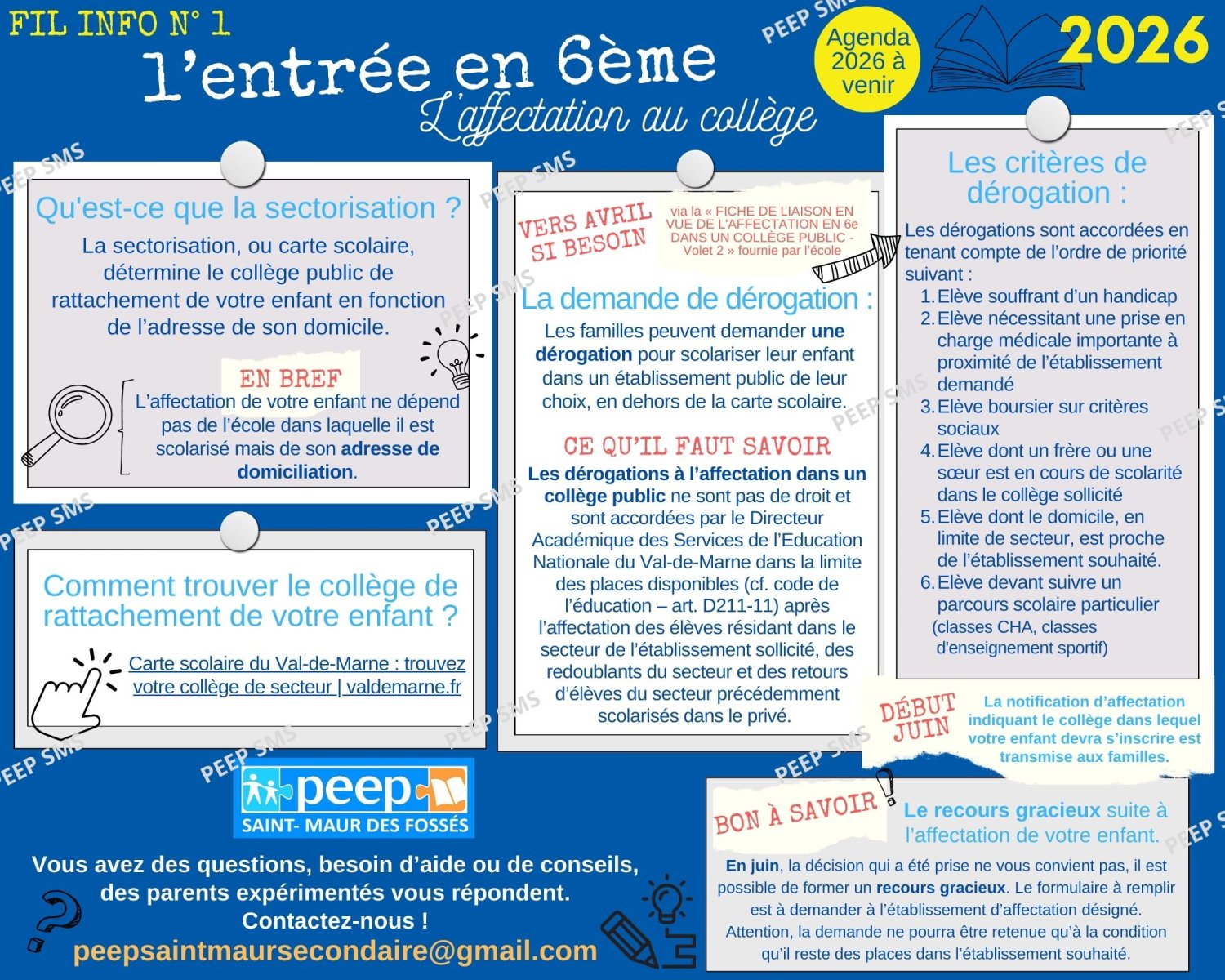 Les dates pour l'affectation des futurs 6èmes dans le Val de Marne Rentrée 2025 (dates 2026 à venir) :